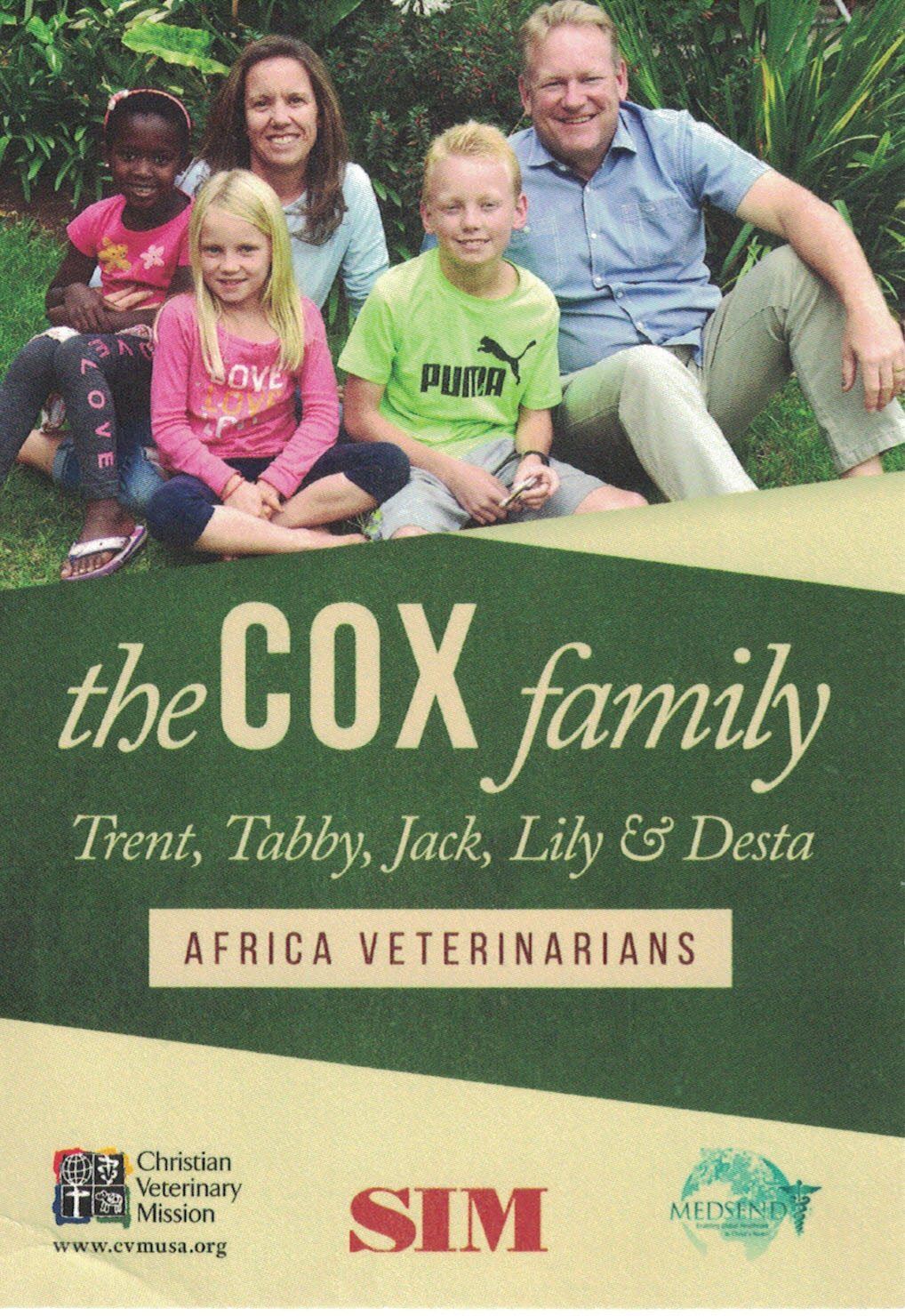 Christian Veterinary Mission (Trent & Tabby Cox in Ethiopia): Christian Veterinary Mission seeks to help veterinarians serve others and live out their Christian faith through their profession. We seek to change lives and communities by improving the care of livestock and other animals. |